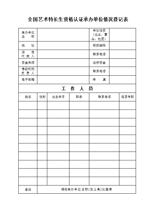 认证承办单位情况登记表