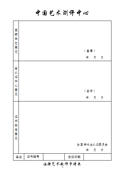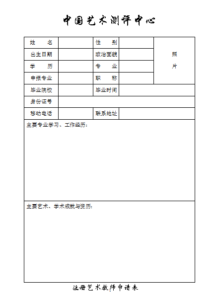中国艺术测评中心注册教师申请表