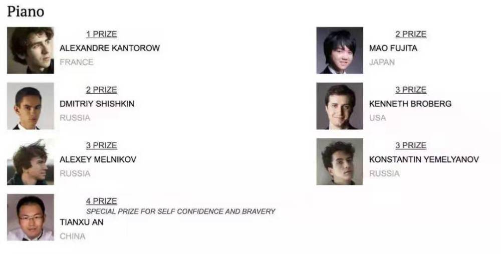 在刚刚结束的第十六届柴可夫斯基国际音乐比赛中, 除曾韵获得铜管组第一名外,出自中央音乐学院的安天旭凭借出色的演奏获得评委们的高度认可,最终获得钢琴组别第四名和组委会特别奖。这也是自2002年中国钢琴家居觐在该项比赛中获奖后,17年来再次有中国钢琴家在这项顶级的国际钢琴比赛中获得奖项。