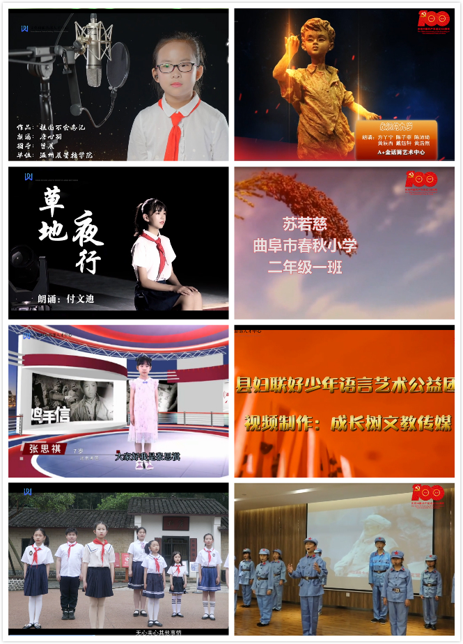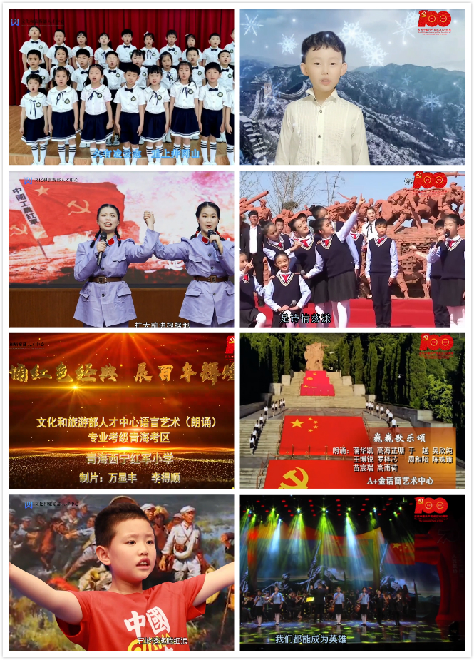 来自北京、辽宁、上海、浙江、福建、江西、山东、广东、湖南、重庆、青海、黑龙江考区的语言艺术(朗诵)专业考级承办单位联动考区优质资源,精心准备,策划编排了一批包含党史事件、英雄人物、红色旧址的语言艺术作品。考生们通过一篇篇饱含深情的诵读展现了青少年传承基因、不负时代的昂扬姿态和对中国共产党的无限热爱和崇敬之情。